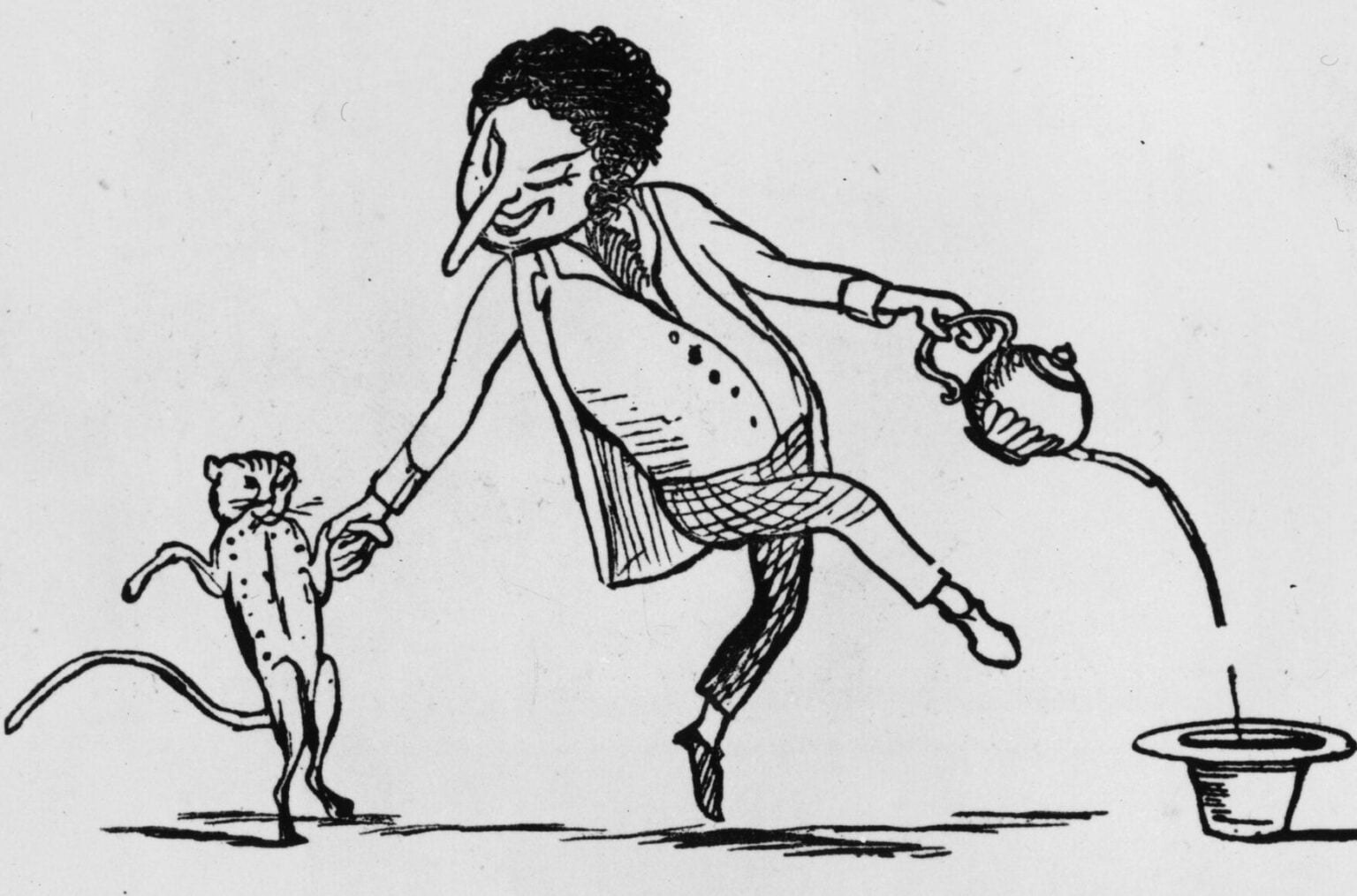 Ο Ντεριντά θεωρεί πως η λογοτεχνία της ανοησίας εκτός από την ανατροπή του γλωσσικού συστήματος, ανατρέπει και την πρωτοκαθεδρία του ίδιου του ανθρώπου στο ιεραρχικό σύστημα μέσα στο οποίο ζει. Χωρίς να υπάρχει η δομή της γλώσσας που είναι άμεσα συνδεδεμένη με την ανθρώπινη ταυτότητα, η ισορροπία των δυνάμεων της ιεραρχίας καταρρίπτεται. Πιο συγκεκριμένα, ο Ντεριντά δηλώνει ότι “το μόνο που διαφοροποιεί τους ανθρώπους από τα ζώα είναι η βίαιη χρήση της γλώσσας από τον άνθρωπο για να υποτάξει και να κατηγοριοποιήσει όλα τα μη ανθρώπινα έμβια όντα κάτω από μία και μόνη λέξη: ζώο”. Εξετάζοντας την Αλίκη των θαυμάτων κάτω από τον μεγεθυντικό φακό του Ντεριντά, παρατηρούμε την αδυναμία της να ορίσει τον εαυτό της χωρίς την βοήθεια της γλώσσας.